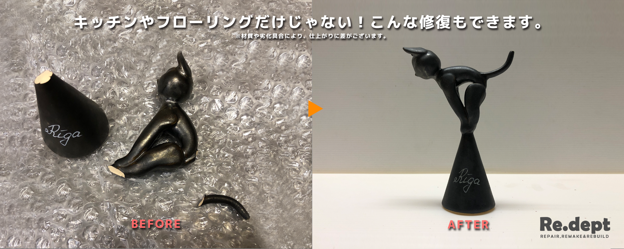Re.deptでご提供している補修内容を種類別にご覧いただけます。お客様のお悩みや修復したい素材に合わせてご覧ください。