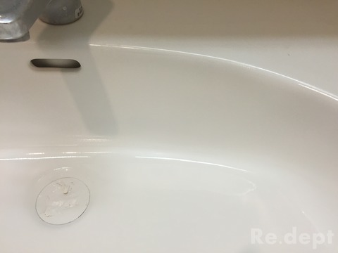 洗面ボウルの割れ補修です。退去立会い迄に直したいと依頼をいただきました。 クラック部分を固定。全面を下地調整後、ボウル内を陶器用にチューニングした塗料で塗装処理。