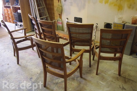 オーナー様のリクエスト通り ブルーの生地に張替いたしました。生地の張替と同時進行でフレームもリフレッシュ塗装です。