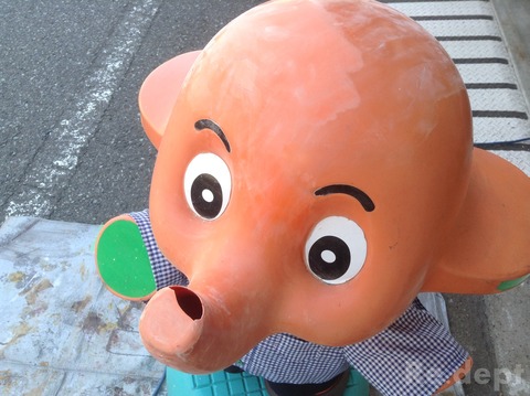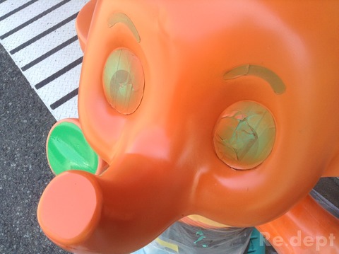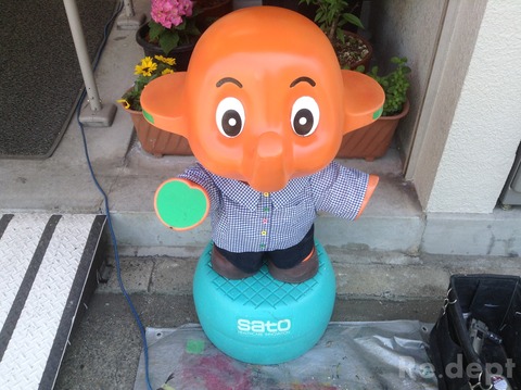 今日は、店舗前のマスコット人形を直してほしいと依頼がありましたのでご紹介いたします。