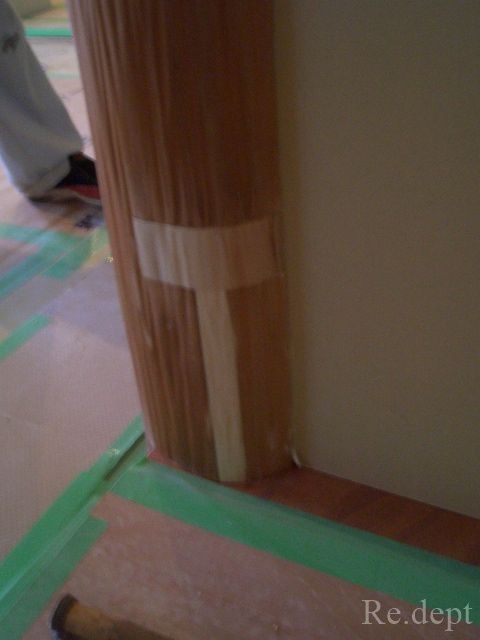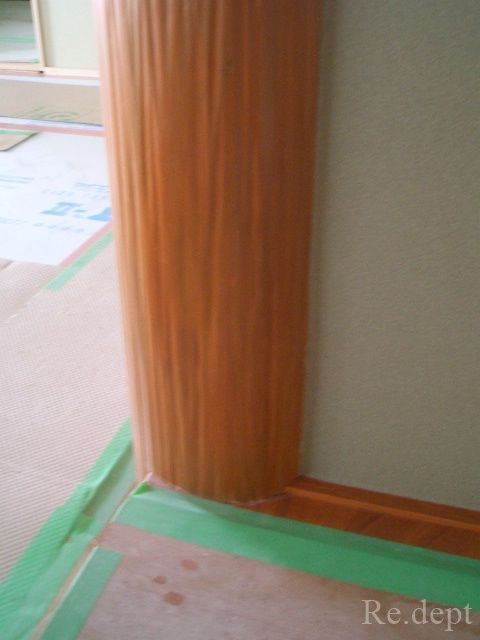 以前の廻縁 鴨居などの跡は埋め木で下地を作ります。慎重に色を合わせて違和感のないよう薄塗りの塗装で仕上げました。