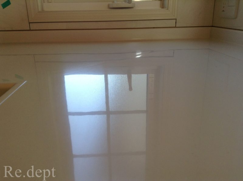 艶のあるタイプなので研磨だけでは消えません。研磨目を揃えて、磨きの工程を追加して完成です。