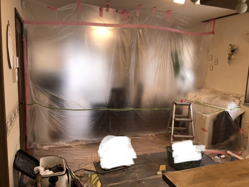 キッチンを入れ替えした。カウンターの交換工事まで予算がないので塗装できれいにしてほしいと依頼がありました。