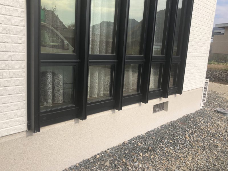 外構工事中に飛石が当たりサッシをキズ付けてしまった。
