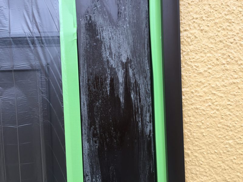 外壁塗装時の養生でアルミドアが変色してしまったようです。
