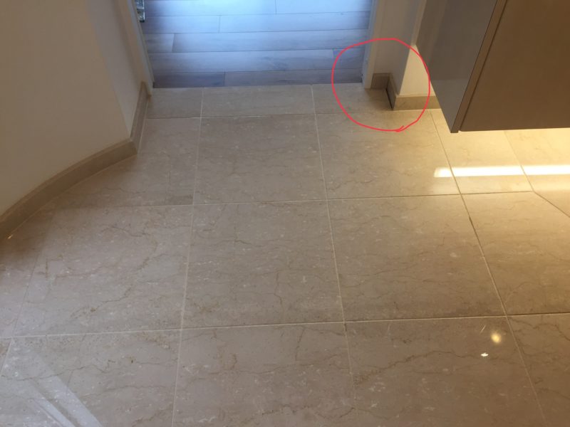 同じ様なものを探したが入手出来なかったので、コンパネで木製の巾木を作成。その上に大理石の模様を描いて完了です。