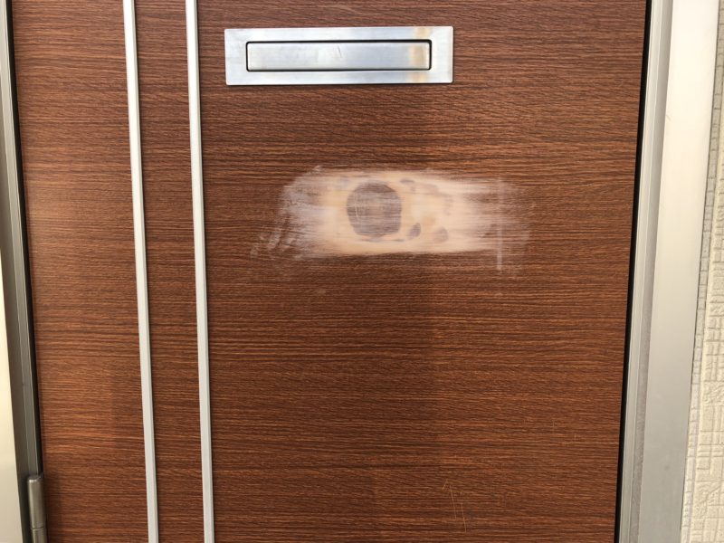 玄関ドアのへこみを直してほしい