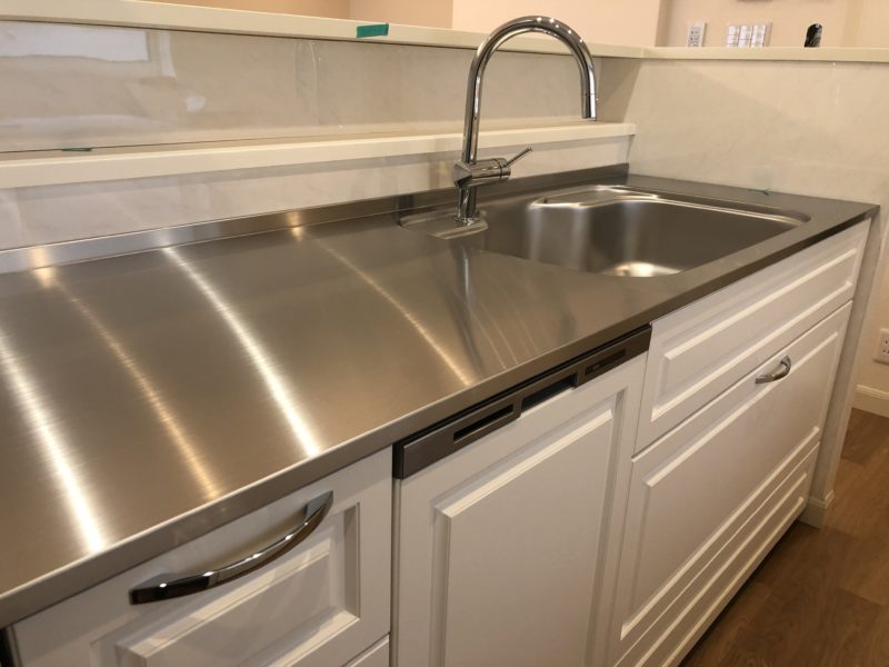 新品のステンレスに付いたキズは小さな物でも目立ってしまいます。真新しいステンレスなのでグラインダーを入れるのも気をつかいます。手あか汚れもありましたのでメンテナンスしておきました。