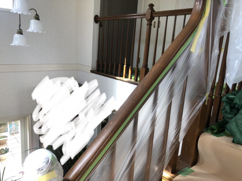 階段手摺の色褪せ塗装補修です。