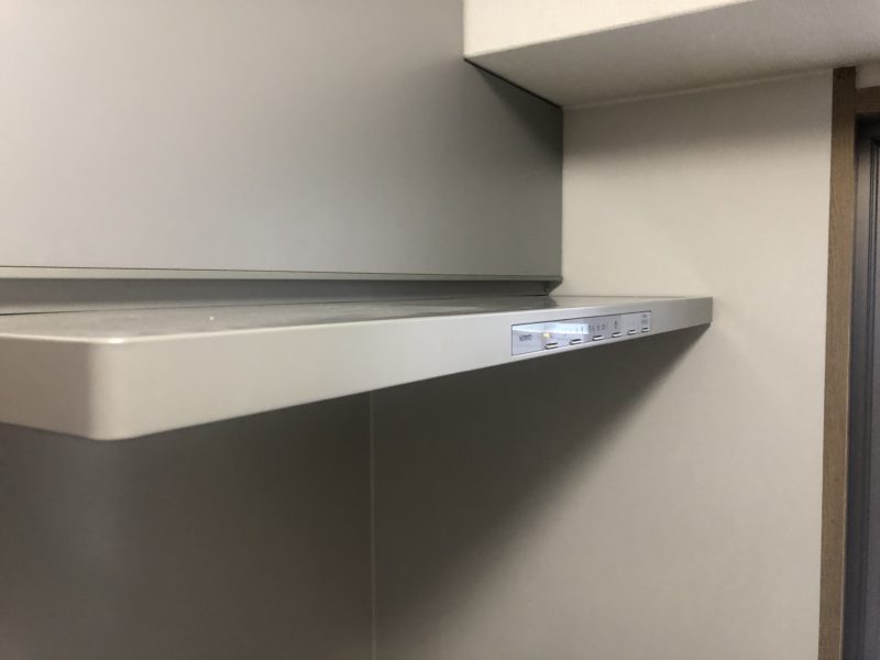 オーダーサイズのレンジフードを取り付ける際に擦ってしまった。キズをパテで平滑に仕上げ 色は現場で調色。塗装して完了です。