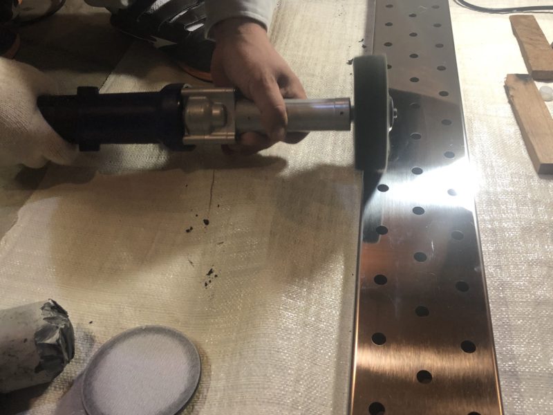 へこみを持ち上げて 研磨で平滑に仕上げてバフ研摩で完了です。