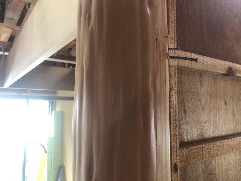 杉 絞り丸太を再利用したと依頼がありました。下地を埋め木で仕上げ パテ処理。カラーリングで色調整して完了です。