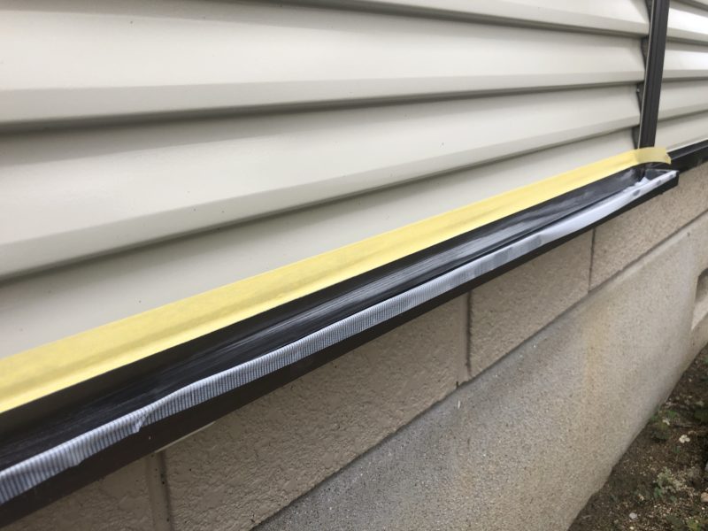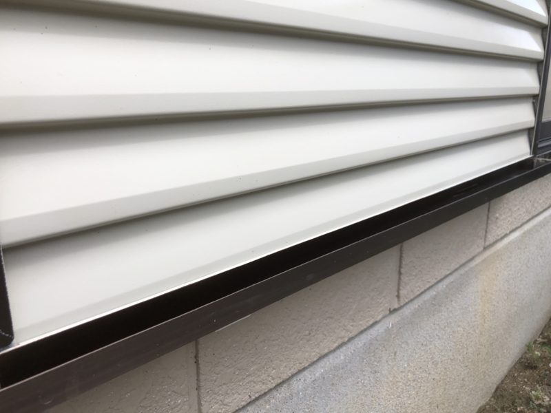 雨戸の擦れキズ補修です。ガイドに擦れてキズがついてしまってます。パテして塗装処理で完了ですが、ガイドが同じ物だと またキズ付いてしまいます。ガイドと干渉しない様 加工していただいて完了です。