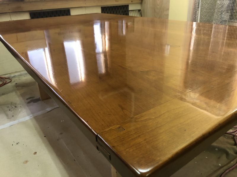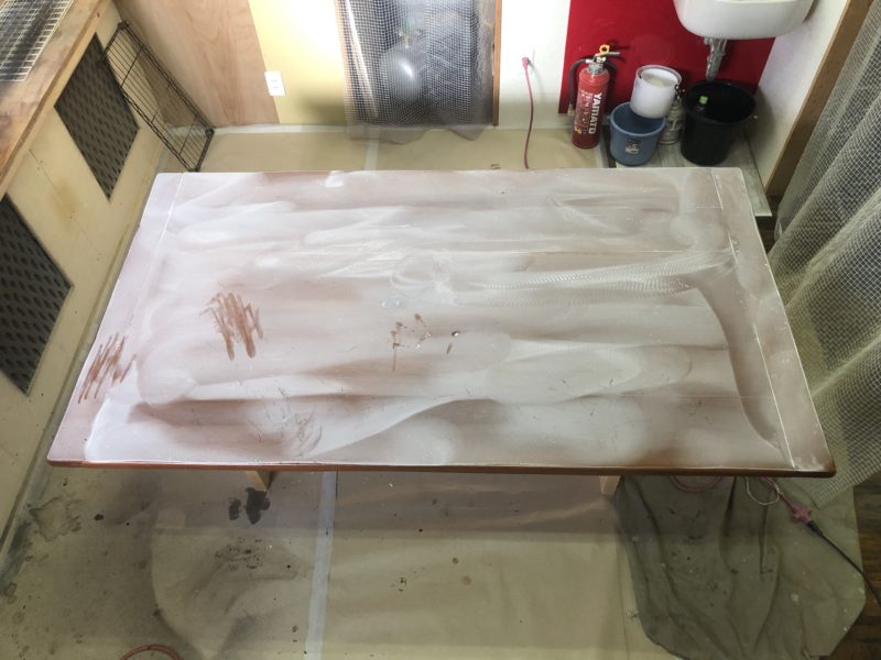 お気に入りのテーブルが汚いので綺麗にしてほしいと依頼がありました。工房に持込んでいただいて修理です。