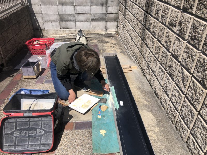 神戸の補修屋アールデプトです。今日はシャッターボックスのへこみを直してほしいと依頼がありましたのでご紹介致します。