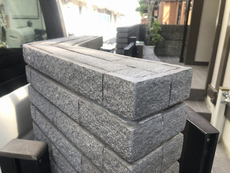 門柱タイルの割れ補修です。同じ物が無く張替えが困難なので補修で対応してほしいと依頼がありました。