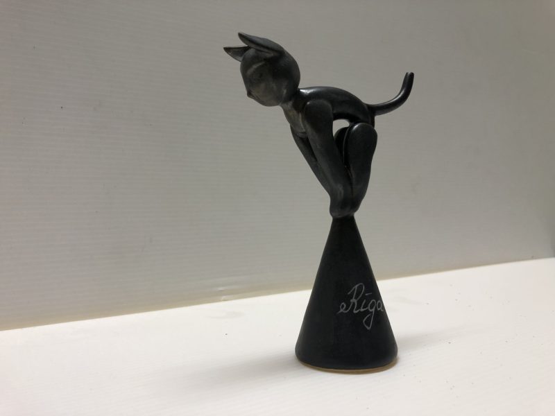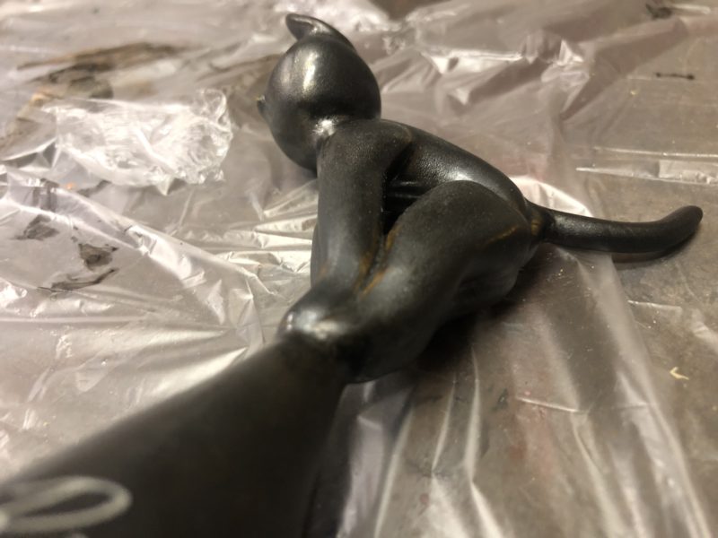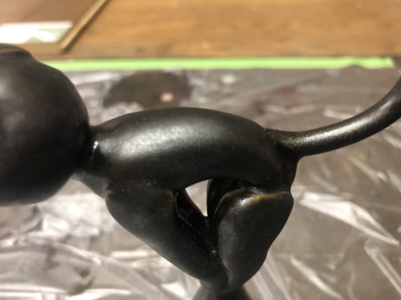 ブロンズ黒染め風の陶器です。接合部が判らない様 輝材で仕上げております。