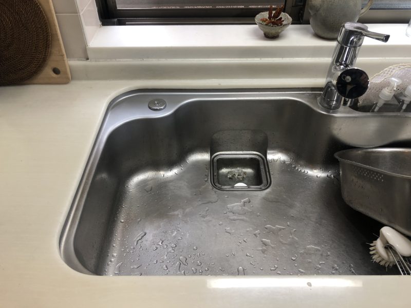 このタイプのシンクは 厚みが0.5ミリ程度しかなく溶接で穴を塞げないです。お客様にご了承いただき耐水パテと塗料で仕上げました。