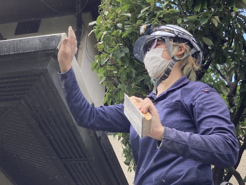 出っ張りは サンダーで削り落としてパテを最小限に致します。