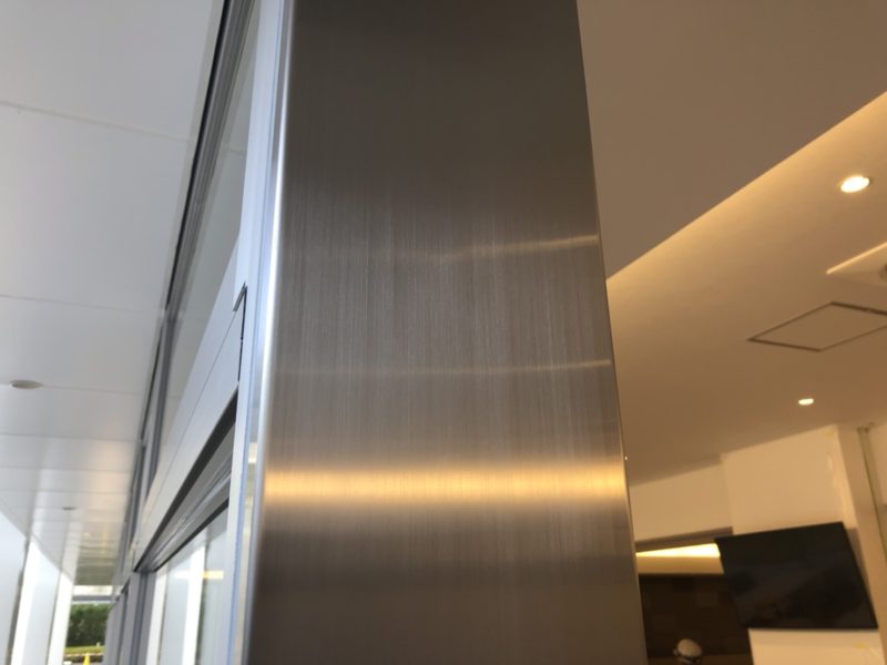 不純物を除去 溶接し研磨で表面を整えヘアーライン再生して完了です。