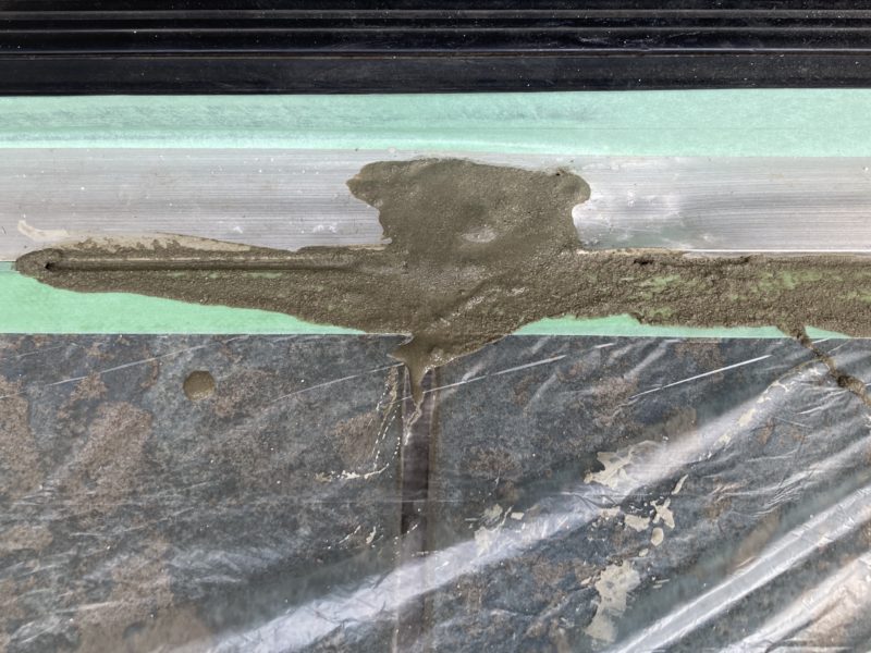 下地のモルタルもスカスカなので 詰め直してからの補修です。