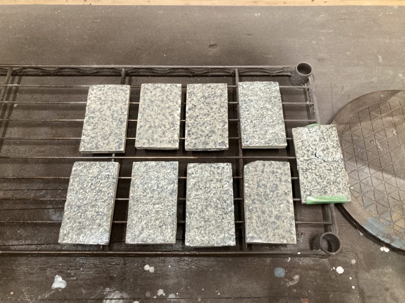 厚みはやや控えめ 柄の元になるチップを樹脂を砕いて作成。