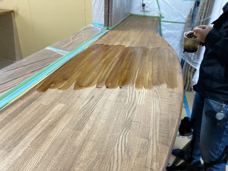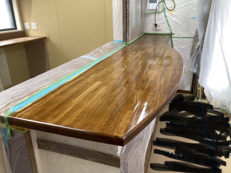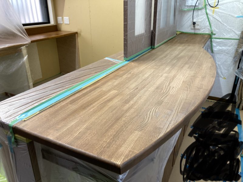 キッチンカウンターを再塗装してほしいと 依頼がありましたのでご紹介いたします。
