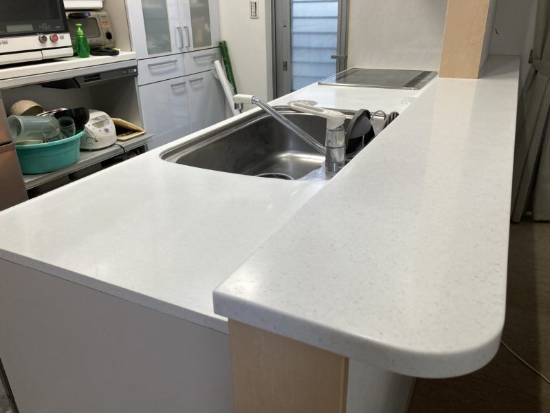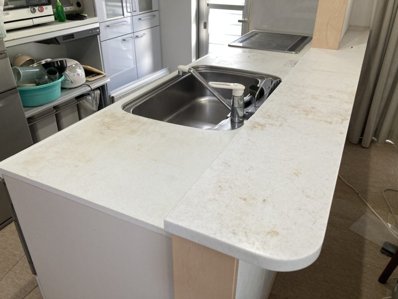 キッチン 人工大理石を磨いてほしいと依頼がありましたのでご紹介いたします。