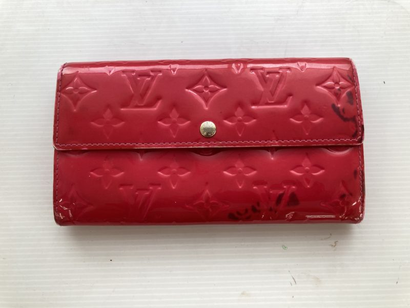 ヴェルニ財布 エナメルのシミを修復いたしましたのでご紹介いたします。
