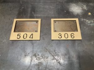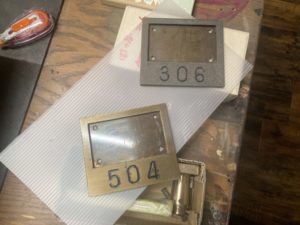 神戸の補修屋 アールデプトです。宅配受付 レバーハンドル クレセント 再塗装が完了致しましたのでご紹介いたします。
