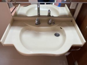 神戸の補修屋 アールデプトです。洗面台の水垢 キズ除去 再研磨が完了致しましたのでご紹介いたします。