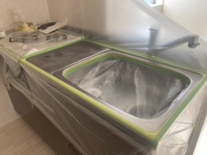 22-84 ステンレス エンボスキッチン へこみ 塗装補修 退去前2022.9.19