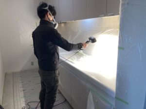 神戸の補修屋アールデプトです。キッチン天板の再生塗装が完了致しましたのでご紹介致します。