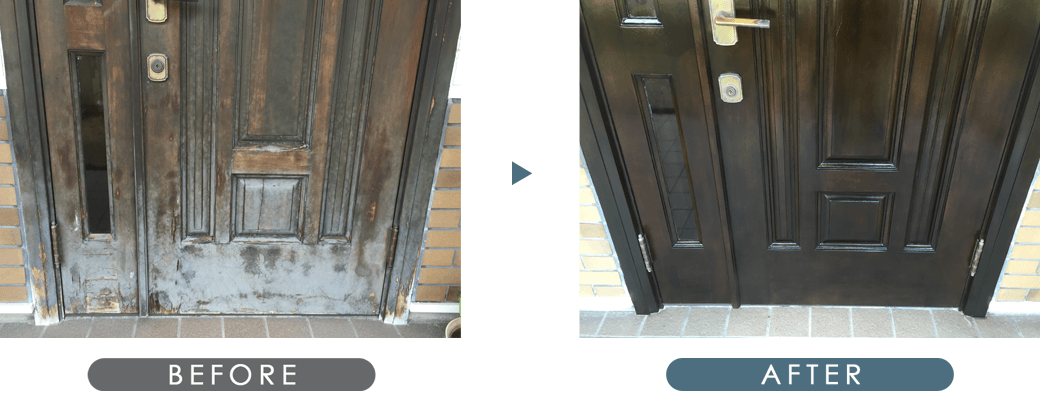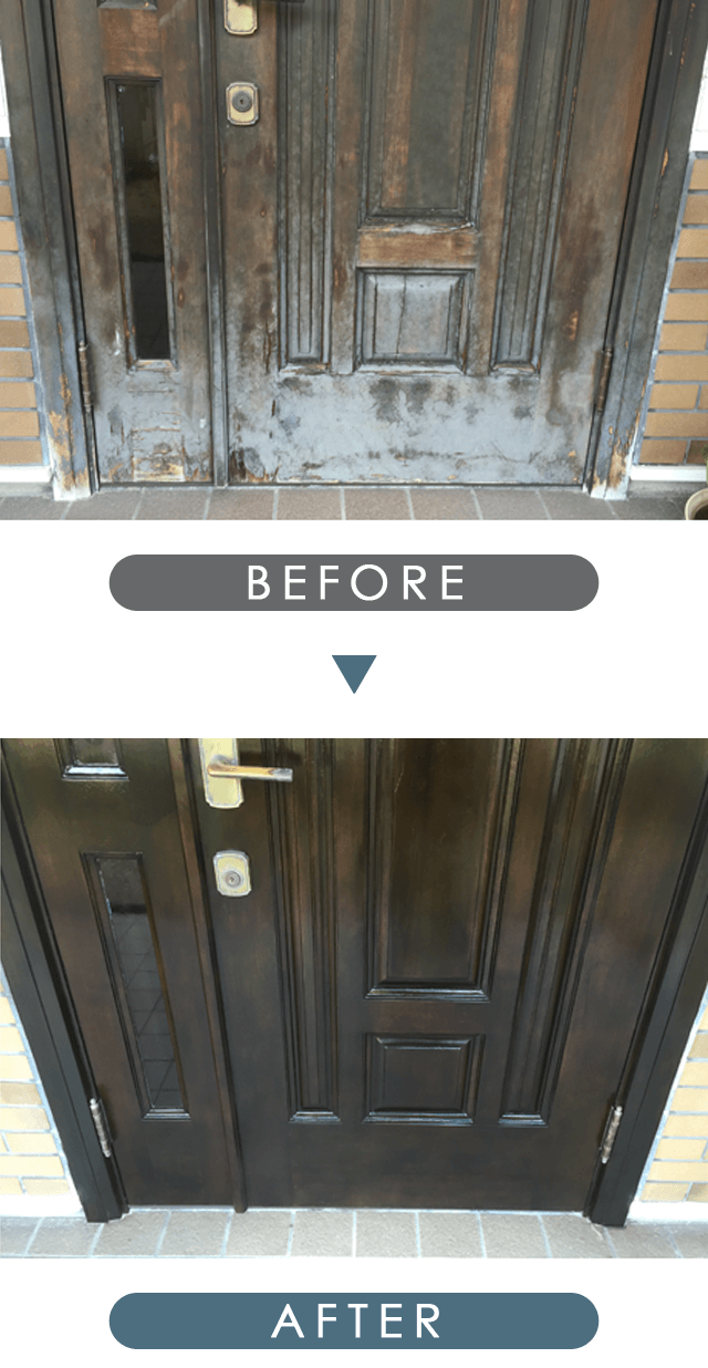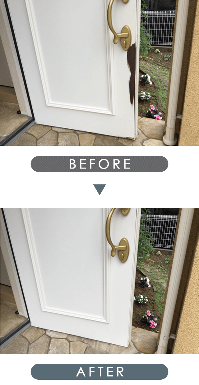 玄関ドアの塗装がめくれてきており、部分的に白く変色して見た目がすごく汚いので、塗り直して欲しい
