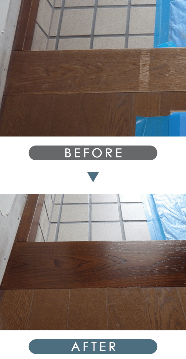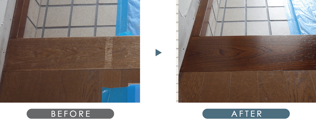 リフォームでフロアの張り替えを予定しているが、玄関の框は予算の関係上再利用するため、リフォーム後のフロアの色に合わせて塗装して欲しい
