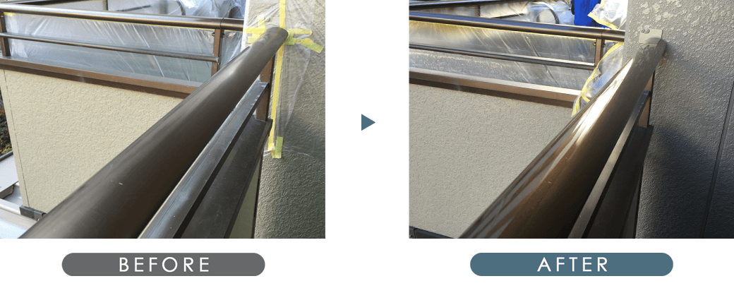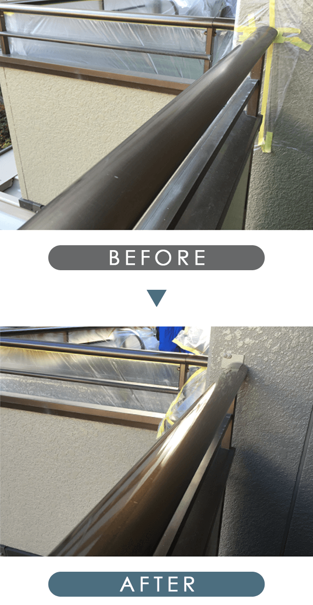 バルコニーの手すりが塗装劣化でチョーキングを起こしており、布団を干すと汚れがついてしまうのできれいにして欲しい
